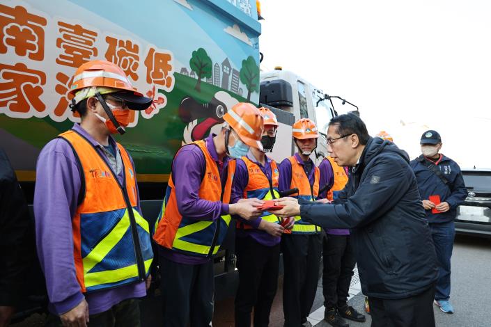 春節過年前夕家戶大掃除,是清潔隊員服務最忙碌的時刻,市長黃偉哲2月10日在環保局長許仁澤陪同下到東區、南區慰勞正在收運家戶垃圾的清潔隊員,感謝大家堅守工作崗位,辛勤維護市容整潔並致贈新春賀禮, ...更多
