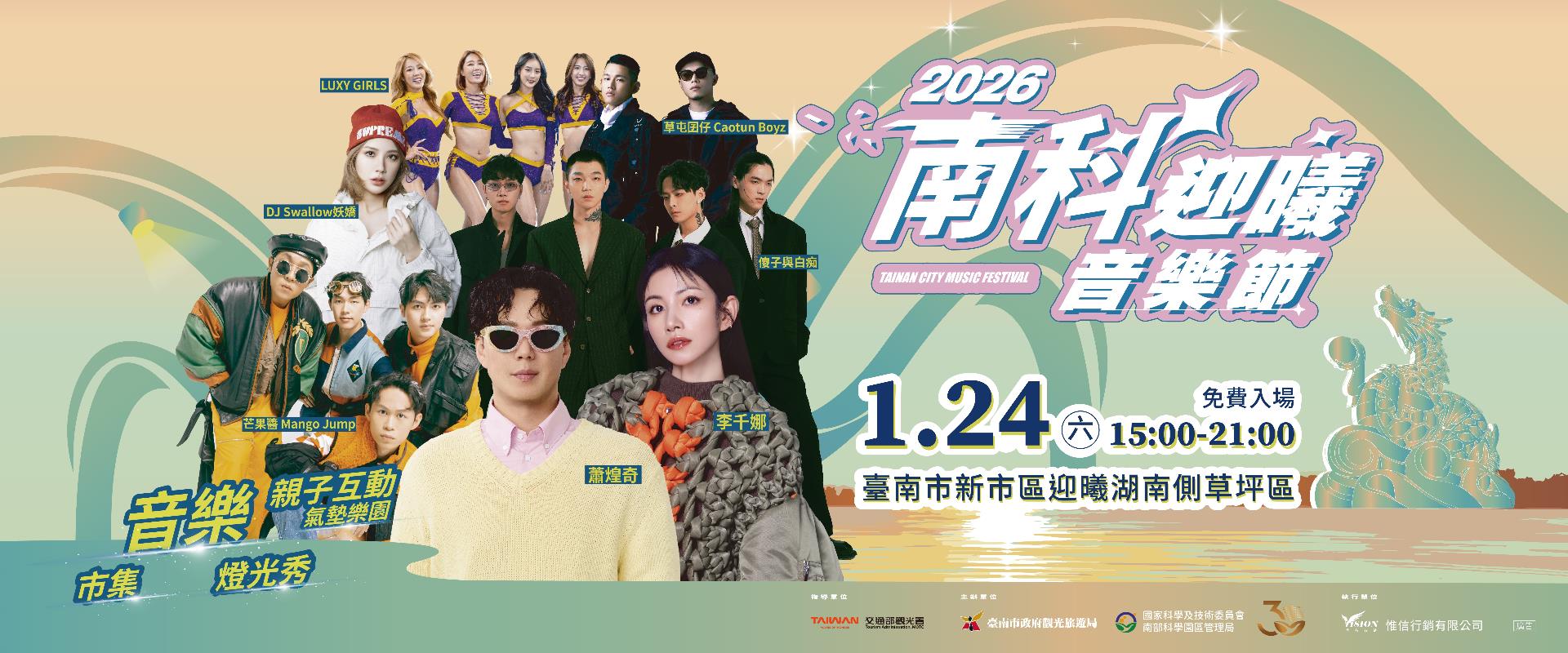 1/24在新市區迎曦湖南側草坪區邀請歌手及樂團熱情開唱,還有小朋友最愛的氣墊城堡、泡泡派對,以及精彩燈光秀、特色市集,讓你音樂、親子與燈光秀一次滿足。更多活動資訊,請密切注意台南旅遊網、台南旅遊臉書粉絲團。