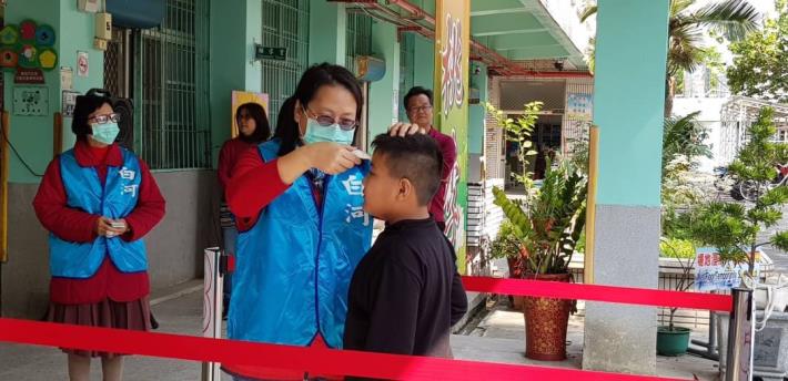 目前學校額溫槍除了各校自備以外,教育局已每9班增補1支,加上後續教育部撥補之額溫槍,預估各校至少每5班會有1支額溫槍,校方也將結合導護人員、志工及行政人員量測學生體溫,可加快測量體溫的作業。
