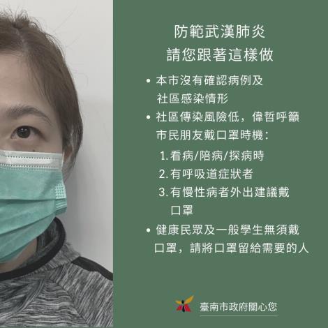 據中央流行疫情指揮中心專家諮詢小組召集人張上淳6日記者會上提示,引用新加坡發表於美國醫學會雜誌(JAMA)的論文,在COVID-19病人無清潔的負壓隔離病房執行環境採檢時,床頭櫃、床欄杆、長桌、洗臉槽、馬桶等檢出新冠病毒,顯示新冠病毒傳播途徑仍以病人飛沫及接觸傳染為主,民眾應落實肥皂勤洗手、及做好咳嗽禮節,尤其病毒可能藉由觸摸臉頰,從呼吸道、黏膜侵入造成感染。我們的大家長黃偉哲市長也是一個公衛專家,他建議民眾減少碰觸眼睛、鼻子、耳朵、嘴巴,要擦鼻子或調整眼鏡時,使用面紙或紙巾碰觸,並且不要使用雙手去揉眼睛,降低感染風險;打噴嚏或咳嗽時,使用手帕或面紙掩蓋口鼻,若有痰液或鼻涕,應使用紙巾包好後,棄於垃圾桶內,沒有手帕或面紙應使用衣袖遮口鼻,並盡速以肥皂清洗雙手。民眾平時養成良好手部衛生習慣,「吃東西前、照顧小孩前、看病前後、如廁後以及擤鼻涕後」應確實執行洗手5步驟:「濕、搓、沖、捧、擦」,雙手抹上肥皂後,指尖、指縫、手心、手背、腕部應徹底搓揉至少20秒,再以清水沖洗乾淨。