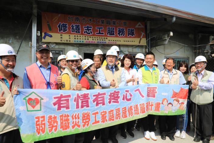 打造臺南市成為安居樂業的「希望家園」,扶助弱勢職災勞工家庭房屋修繕腳步不停歇!臺南市長黃偉哲今(8)日來到善化區訪視鄭家長輩,與李偉智議員一同了解修繕進度及改善後的居住環境,並衷心感謝慈濟及各個工會等志工隊出錢出力,期盼「有情有疼心ㄟ厝」計畫順利解決弱勢民眾住的困境。