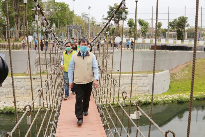 台南市竹溪流域具有悠久文化歷史及人文史蹟,工務局配合體育園區及竹溪水環境改善計畫,同步改建竹溪橋、營造周邊景觀及改善鳳凰吊橋,工程進入最後完工驗收階段,將於本(4)月底開放,台南市長黃偉哲今(15)日特別前往檢視工程品質,再要求務必盡善盡美,黃偉哲期盼工程完工後,串連竹溪兩岸景觀,重現竹溪水岸百年風華。