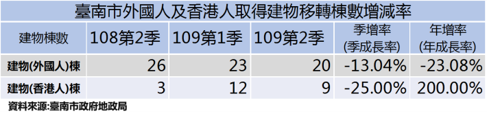 地政局長陳淑美表示,一般不動產交易習慣,簽約至實際登記過戶約有1個月的時間差,所以本季仍是處於新冠肺炎疫情較嚴峻的期間,與去年第2季相比呈現下滑,顯見上半年疫情的影響仍持續發酵,但本季臺南不動產交易量已呈現回升,在6月全國初解封後,後續不動產交易變化值得持續觀察。