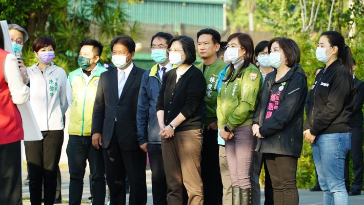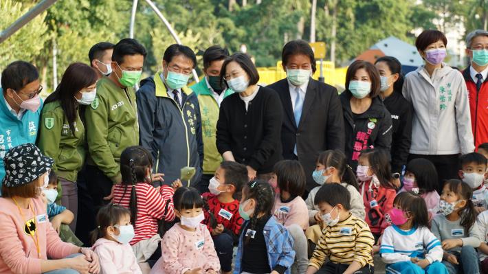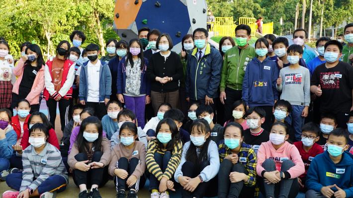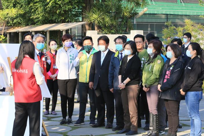 109年改造完工的「台南觀光新亮點」—竹溪,今(15)日下午獲總統蔡英文指名與台南市長黃偉哲共同前往踩點,兩人並開心的與公園遊玩的小小孩在沙坑裡互動拍照。立法委員林俊憲、林宜瑾、賴惠員,及台南市議會議長郭信良,議員李啟維、呂維胤、周麗津、陳怡珍也陪同視察。