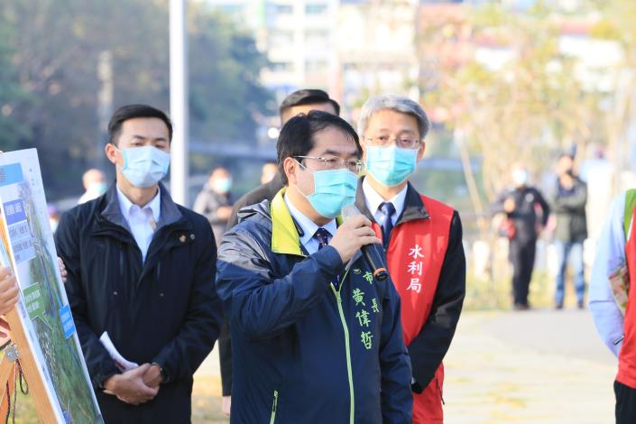 台南市長黃偉哲表示,這幾十年來竹溪從一個排放家庭生活廢水的臭水溝,變成一個可以親水、近水的遊憩場所,非常不容易,之前106年海棠颱風來襲時幾乎水面跟路面一樣高,現在經過淨水,水質淨化之後能夠讓民眾來親水,這樣的變化在公共工程而言CP值是非常高的,而治水、親水的部分台南會再接再厲,負起該負的責任,但也懇請中央能夠幫忙,為台南市民創造更好的親水環境。