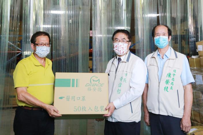 洪董事長特別強調,除了今天當場捐贈1萬個口罩給市府,由市府協助發送給中低收入戶、獨居老人及街友等,讓弱勢民眾日常生活多一層防護,接著從下月開始到年底,每月都會捐給市府1萬個口罩,提供給弱勢族群保護其健康。