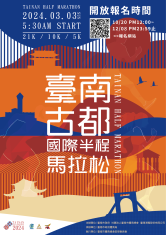 體育局陳良乾局長表示,臺南古都國際半程馬拉松賽事共分為半程馬拉松組(21.0975km)、路跑組(10km)及健康休閒組(5km)三個組別,跑友可以體驗古都多元風貌、獨家安平港區景色以及豐盛美食小吃,賽事也貼心規劃專業配速員、專業救護團隊與熱情加油團,跑友不管是想要挑戰自我極限,還是要輕鬆跑漫遊臺南,都歡迎各地跑友踴躍報名參加,相約明(113)年3月3日一起到臺南盡情奔馳,相關報名資訊歡迎至2024臺南古都國際半程馬拉松官方網站(http://www.tainanhalfmarathon.com/)查詢,趕緊揪親朋好友一起到臺南古都國際半程馬拉松留下美好的回憶。