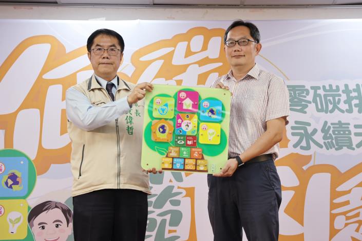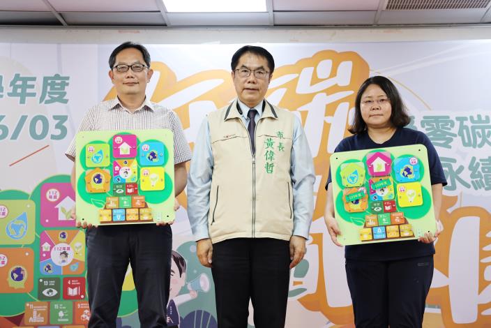 黃偉哲表示,台南市在11年前開創低碳標章認證,帶領學校朝向世界環保趨勢前進,目前全市國中小學校已有95%通過標章認證,顯見低碳觀念已深植校園內。