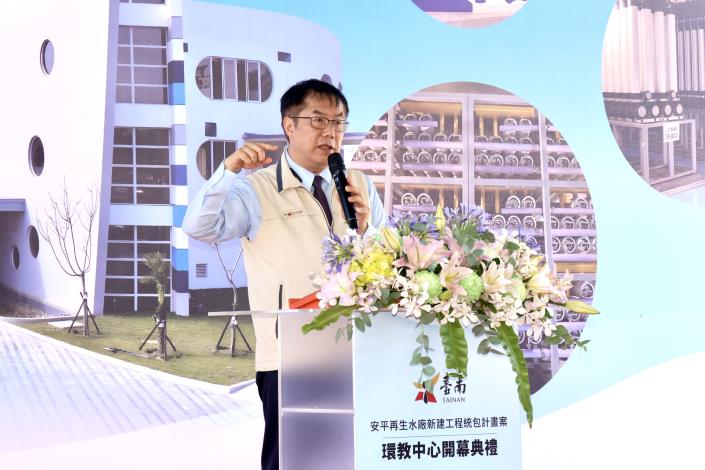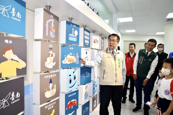 黃偉哲表示,水是珍稀資源之一,台灣因地形關係保水不易,被聯合國列為缺水地區之一,因此珍惜並善用水資源相當重要。感謝中央於水資源再生利用計畫推動與經費支持的協助,以及工程團隊克服疫情、缺工缺料挑戰,讓再生水廠如期如質完工。未來市府會善加利用再生水廠的環境教育中心,當作學生校外教學以及環境教育場地,期盼成為水資源保育傳承典範。