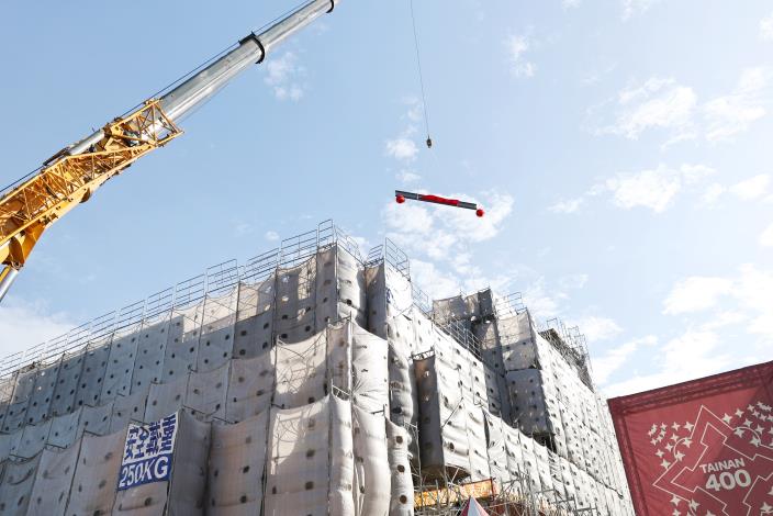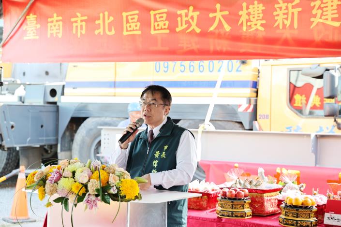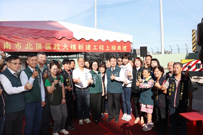 為營造優質辦公環境及創造多功能使用效益,臺南市政府新建北區區政大樓,今(24)日舉行新建工程上樑典禮,市長黃偉哲擔任主典官主持上樑祈福儀式,議長邱莉莉及市議員許至椿、陳怡珍、沈震東、北區區長潘寶淑皆到場見證,祈求新的區政大樓施工順利,未來提供市民朋友更舒適的洽公環境及安全便利的托嬰空間。