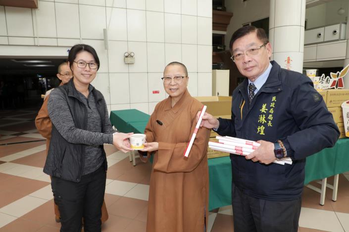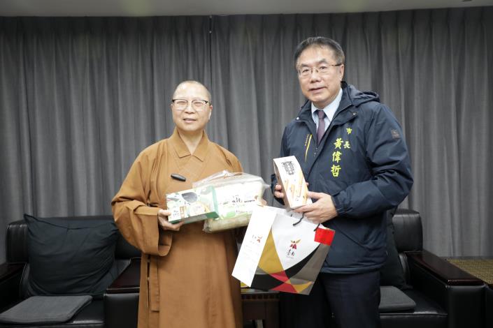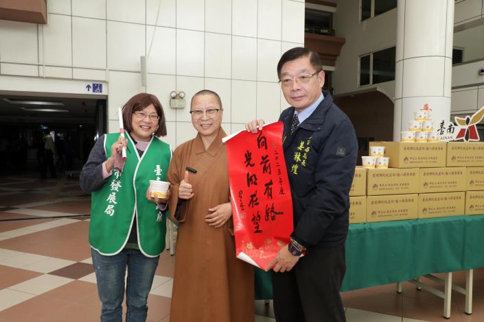 為慶祝農曆12月8日的佛陀成道日,佛光山南台別院每年準備佛粥(臘八粥),除在道場供應禮佛信眾外,還分送政府機關、公司行號及弱勢團體等單位,今(7)日南台別院住持滿舟法師親送臘八粥及春聯「向前有路 光明在望」至臺南市政府與市長黃偉哲分享,黃偉哲也回贈臺南農特產品,且對於佛光山長久以來對臺南社會福利的重大貢獻致上謝意。