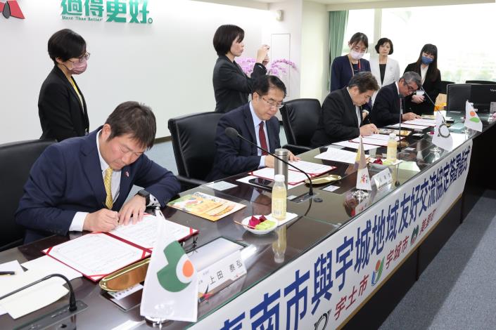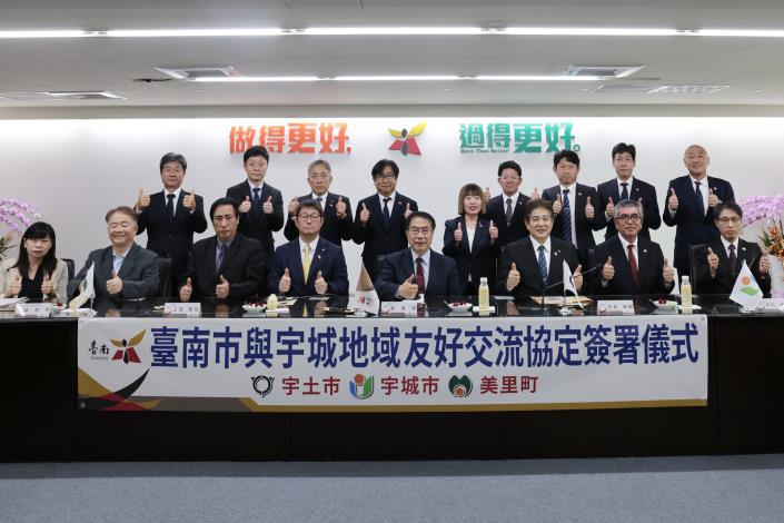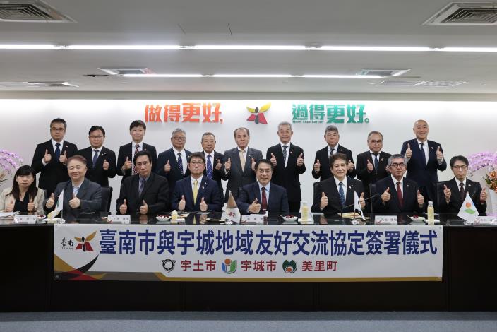 台南市長黃偉哲今(13)日與日本熊本縣宇城地域(宇土市、宇城市、美里町)3位首長共同簽署友好交流協定,這亦為台南首次跳脫一對一城市交流的框架,與三個城市所組成的地域締盟,進而展開更全面的國際交流。