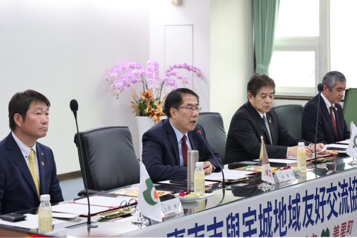 本次宇城地域訪團由宇土市元松茂樹市長、宇城市長臨時代理人天川竜治副市長、美里町上田泰弘町長共同率團(一行35名)。元松茂樹市長說,去年訪團也在3月13日「台南市正義與勇氣紀念日」來訪,當時自己曾表示會努力推動雙方交流,期待日後雙方締結友好交流協定,很感謝台南市共同努力實現這個目標,宇城市長臨時代理人天川竜治副市長、美里町上田泰弘町長也都承諾將繼續加深雙方情誼及推動交流。