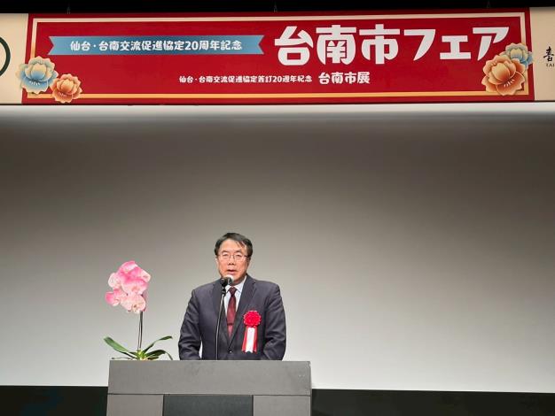 黃偉哲市長在紀念儀式上用日文親切用日文打招呼,現場190位貴賓都會心一笑。黃市長表示台南是台灣第一個城市,仙台是台南第一個日本締盟城市,有「兩個第一」,雙方締盟以來一直維持著非常友好的關係,各方面交流都很熱絡,在喜慶時一起慶祝,在震災、疫情中都相互關懷,希望友誼可以傳承到下一代。