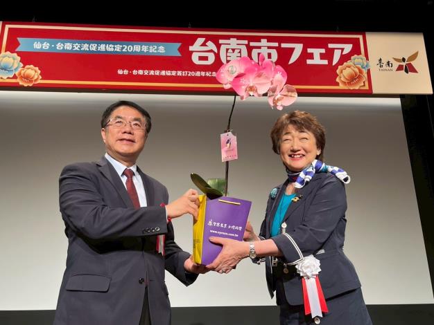 台南跟仙台因七夕祭典結緣,在2006年1月締結為友誼市,仙台更是台南在日本的第一個締盟城市,雙方的交流跟互動極為緊密,隨著兩市即將迎接締盟20週年,仙台市政府特別規劃一系列紀念活動,並邀請台南市參與,盼讓仙台市民更加認識台南還有兩市的淵遠情誼,市長黃偉哲也受邀親赴當地,在29日上午跟仙台市郡和子市長連袂主持紀念儀式,黃市長也特別致贈噴有仙台市徽以及20週年字樣的噴印蘭花給仙台市長,許下兩市情誼長久的共同期盼。