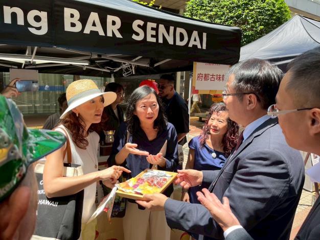 仙台市郡和子市長非常高興兩市可以一起迎接締盟20週年,細數兩市交流時,日本大地震時給予仙台的溫暖援助,仙台市民至今銘記在心。郡市長說這次選在仙台市中心辦理紀念締盟20週年的台南展,希望將台南觀光、物產美食介紹給更多市民。郡市長也十分讚揚台南優質物產及水果,表示日前仙台市小學營養午餐上享用了台南鳳梨,大家都覺得非常美味。