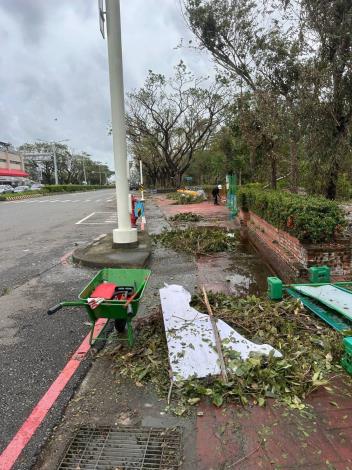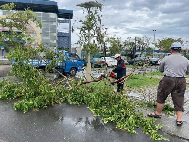 陳良乾局長表示,為避免園區樹木倒塌區域積水成為登革熱溫床,除加速倒塌樹木移除外,更要積極處理災後所產生的垃圾,避免變成積水容器成為登革熱的溫床。