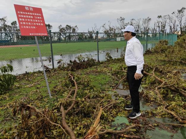 體育局表示,新營體育園區及新營網球場等,在這次颱風受創嚴重,其中包括新營田徑場完工一年多的司令台屋頂、新營網球場圍籬、壘球場積水及照明設備倒塌,其中,新營體育園區內包含第一至第五停車場及228公園、田徑場周邊包含壘球場旁的樹木,整個園區近一半傾倒或折斷,原本茂密的森林景觀,已不復見。陳良乾局長憂心樹木倒塌恐造成人員受傷與財損,特別指示體育局同仁及廠商於安全的前提下儘速處理,進行分區分階段搶災及移樹等工作。