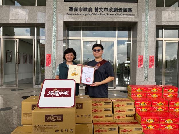 本市日前受丹娜絲颱風侵襲造成多處地區災情,台南市政府感謝各界支援,協助受災民眾儘速復原。今(14)日特別感謝高雄市政府海洋局石慶豐局長,攜同高雄三大遠洋公會(台灣區遠洋鮪延繩釣漁船魚類輸出業同業公會、台灣區遠洋鮪延繩釣漁船魚類輸出業同業公會、台灣區遠洋鮪延繩釣漁船魚類輸出業同業公會)、高雄區漁會、順億超低溫股份有限公司、得意中華食品公司與鎮一造機有限公司代表,共同捐贈285箱漁產罐頭及1000顆即時海味粽,以實際行動展現跨縣市間災難互助的溫情。