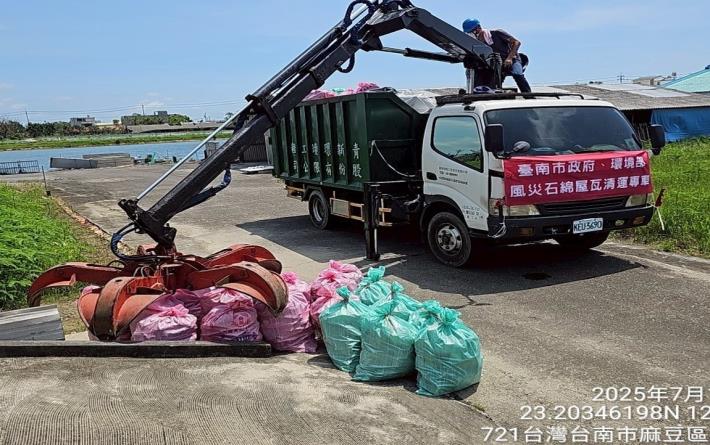 此外,針對石綿瓦災後清理,環保局說明,截至7月17日止,已受理登記案件達1,188件,累計清除量為75.1噸。環保局提醒民眾,若需清理石綿瓦,應先妥善分類並裝入專用太空包或袋具,綁緊封好後,可透過電話、傳真或聯繫里幹事、區公所進行通報,將由環保局派員協助清運;也呼籲民眾務必做好個人防護措施,避免吸入粉塵。如無包材,可就近洽詢各區公所索取。