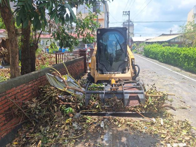 而在公園、路樹倒塌清理作業部分,據市府工務局統計,截至7月17日,工務局出動抓斗車、吊卡車、山貓、怪手、中型卡車等共有782車次,並動員鏈鋸手、技術工等人力2,131人次,目前全市包含公園及行道樹在內,總倒塌樹木達26,268顆,已完成清理21,928顆,完成率約83.5%。其中行道樹部分預計將於本週內全數清除完畢,優先確保交通通行安全無虞。
