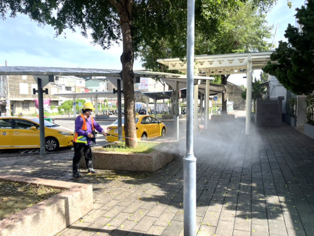 為防範災後疫情風險,針對積水區域與交通場站,環保局已完成全區環境消毒,並於重災區每日持續派員進行清消作業,降低病媒蚊孳生風險,守護市民健康。
