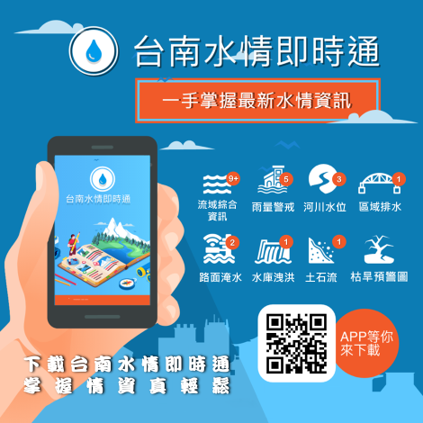 水利局提醒近期天氣不穩定,仍有大雨及局部豪雨發生,民眾可多利用臺南市政府官方Line群組、「臺南水情即時通APP」,隨時瞭解水情狀況及氣象情資,提早防災、避災。若發現側溝落水口、水溝蓋或私人溝渠有樹葉、雜物阻塞或塑膠墊覆蓋等情形,亦請市民朋友協助清除或通報市府1999市民服務熱線處置,以避免阻礙水流。