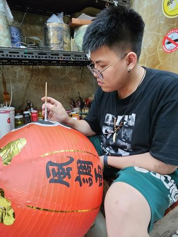不同於有設計背景的堂哥王立杰,王睿誠畢業於東海大學社工系,5年前因父親身體微恙才回家學習接棒。從小對寫字畫畫沒興趣,又非本科出身,他只得更加努力。在爸爸手把手教學下,王睿誠每天苦練十小時,2年便可獨立繪製龍燈。但他也坦言部份字體結構、比例細節還不太能掌握,需要持續精進。王睿誠喜愛獨立音樂,創作時習慣戴耳機聽重金屬讓自己全神貫注。能接到大港開唱以及美食YouTuber痛風老饕客製訂單、又目睹自己作品躍上音樂祭舞台,覺得彩繪燈籠帶給他許多意外收穫,希望和堂哥共同傳承這項技藝,並且突破創新,讓苑輝燈舖走得更遠更久。