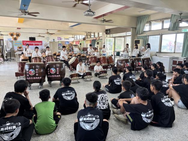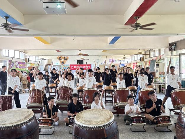 為提升兒少課後照顧據點量能、促進跨縣市兒少交流,臺南市政府社會局促成本市補助的後壁區佳田小衛星與彰化縣政府補助的秀水鄉馬興小衛星,今(22)日於後壁區上茄苳里活動中心辦理暑期「鼓藝交流活動」,讓孩子們在節奏與鼓聲中分享學習成果、認識彼此生活文化,共同度過充實而有意義的暑假時光。