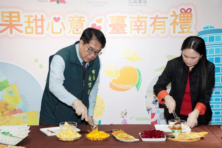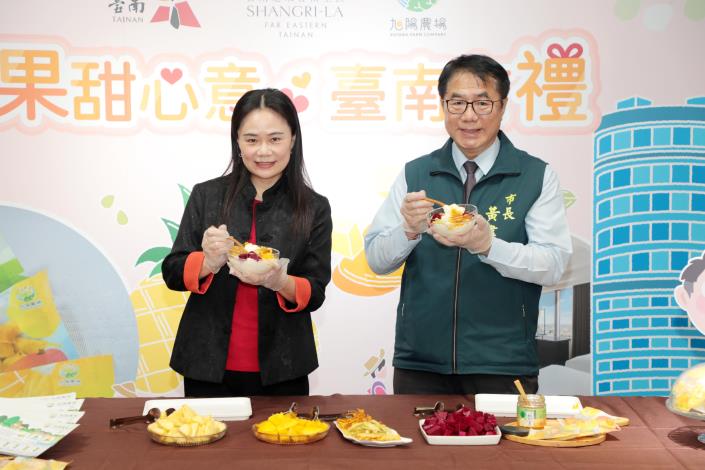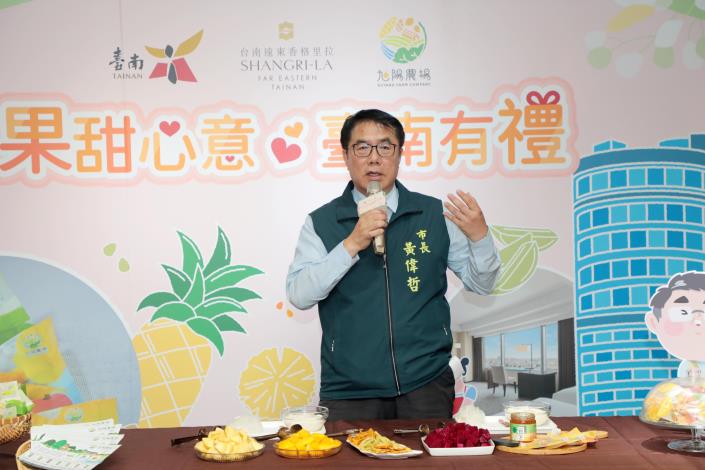 黃偉哲說,在如此艱困的情況下,仍有像旭陽農場這樣的農民與企業堅持投入轉型,不僅取得相關認證,更透過技術加工,將受產季限制的新鮮水果製成果乾,保留原味且便於保存與運輸,不但提升附加價值,也讓來自世界各地的旅客全年都能品嚐台南的在地風味。他肯定此次遠東香格里拉飯店、旭陽農場與市府的三方合作,讓旅客一踏入飯店,就能認識台南的優質農產,也期盼透過此次專案,吸引更多國內外旅客將台南農產帶回家,市府未來也將持續拓展通路,全力協助在地農業業者走向國際,創造更大的經濟效益。