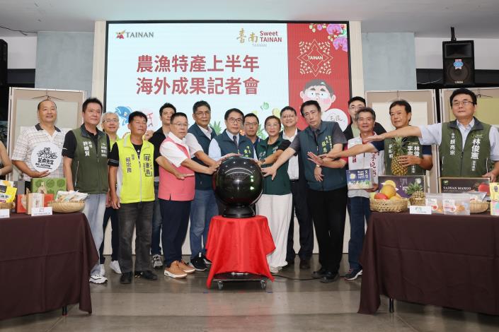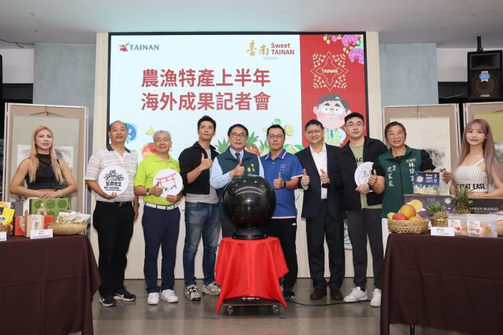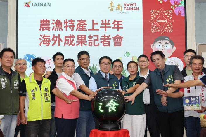 市府農業局今(2)日於民治市政中心舉辦「2025台南市農漁特產上半年海外拓銷成果記者會」,市長黃偉哲率領市府團隊及多家參展業者,共同向外界展現台南農漁特產在國際市場的拓銷成績。