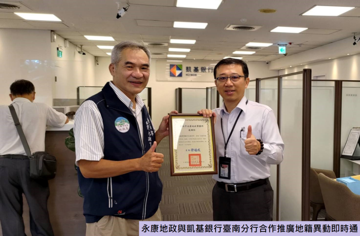 隨著詐騙手法不斷推陳出新,不動產詐騙案件層出不窮,嚴重威脅民眾的財產安全。為積極防範與遏止此類不法行為,臺南市永康地政事務所除了與警方合作建立通報機制外,於日前更進一步與凱基銀行臺南分行攜手共同推廣「地籍異動即時通」地政服務。這項合作的重點,是將該服務整合到金融機構的不動產貸款流程中,協力推廣民眾在辦理不動產抵押設定時,同步併案申請此服務,讓地政與金融機構聯手,共同強化預警機制,有效提升防詐力道,擴大阻詐效益。