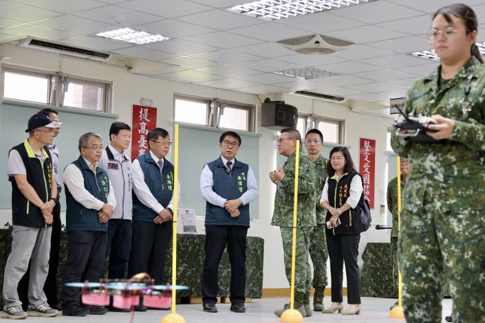 市長黃偉哲表示,今日非常榮幸有機會來到國軍無人機訓練中心參訪,在過程中充分了解國軍與市府在各項市政方面有許多可密切合作的地方,包括環保、水利、消防以及衛生等領域。以往在防災、救災的場合,時常可以看到國軍們保家衛國的身影,但藉由科技的創新與發展,日後也有機會看到無人機的出現,逐漸成為現代重要戰力,並在支援上扮演關鍵角色。他感謝國軍無人機訓練中心的支持,更期待市府與國軍未來能有更多實際操作經驗的分享與交流。