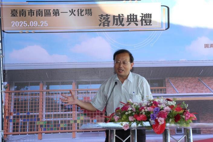 臺南市南區第一火化場改建工程於114年9月25日上午9時25分舉行落成典禮,由民政局姜淋煌局長親自主持,內政部宗教及禮制司唐根深專門委員、殯葬管理所黃相忠代理所長,本市葬儀公會、南區區公所、在地議員及里長,工程監造與施工單位等各界貴賓齊聚一堂,共同見證新式火化場的落成。