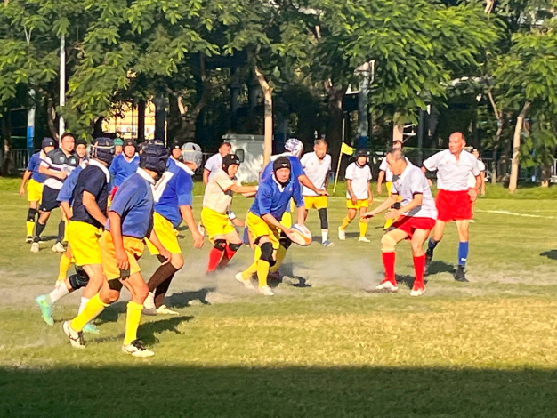 臺南市立橄欖球場今(27)日迎來號稱臺灣橄欖球界的不老勇士「台灣無惑橄欖球俱樂部」,俱樂部成員來自臺灣各地,特殊的是加入俱樂部的資格需50歲以上即可加入,你沒聽錯,50歲以上,如此高強度的比賽,俱樂部成員資格要50歲以上,整個俱樂部號稱千歲俱樂部,從50至80依然活耀平日訓練與比賽,俱樂部平常活躍於臺北市百齡公園河濱橄欖球場,特殊的是,為了安全起見,以褲子顏色區分年齡,藍色為+50歲,紅色為+60歲,黃色為+70歲,紫色為+80歲 ,大家過去都是球場的好手,明年定期到國外交流訪問,今年11月將赴日本訪問比賽,今天特來臺南移地訓練比賽,曾是無惑球員的臺南市政府體育局長陳良乾,特別在市立臺南橄欖球場迎接來自全國的300多位好手此次,每個成員幾乎都有過於臺灣唯一專屬的橄欖球場「臺南市立橄欖球場」比賽的經驗,為體驗過去年輕時當球員的風光歲月,本次「台灣無惑橄欖球俱樂部」重新回到市立球場進行球敘及友誼比賽。為慰勞這群臺灣橄欖球的菁英與推手,陳良乾局長於特別前往臺南市立橄欖球場進行致意,以臺南市地主身份與本身也是橄欖球國手的身分向這群推動臺灣橄欖球並以身示範的精神致敬。