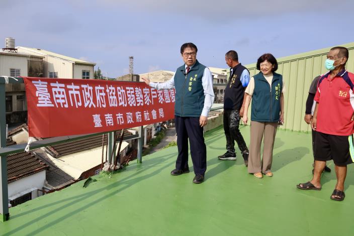 社會局長郭乃文指出,本次完成修繕的家庭為一對同住的母子,兩人皆患重病,需長期進行洗腎治療,行動不便且無力負擔修繕費用。風災當時,住家三樓的鐵皮屋頂被強風吹落,牆面倒塌並壓向鄰屋,情況十分危急。社會局接獲通報後,立即媒合土木包工商業同業公會投入房屋修繕作業並施作防水工程,協助受災家戶恢復安全家園。社會局在此次風災中積極扮演支持與關懷的角色,從災情通報、物資協調到實質修繕,全程參與、迅速應對,攜手公私部門共同為弱勢家庭伸出援手。郭乃文強調,這份跨單位的協助合作,不僅僅是災後的重建行動,更是在中秋佳節前,為身處困境的家庭送上最真摯的祝福與陪伴。