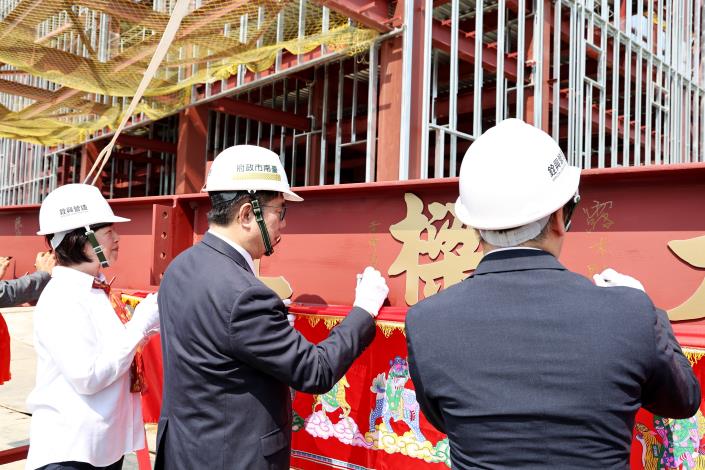 日商台灣荏原精密股份有限公司今(16)日上午於南科三期舉行「台南第二工廠」上樑典禮,邀請台南市長黃偉哲偕同南科管理局副局長林秀貞、科工區南區辦事處長郭春暉及台灣荏原董事長露木聖一等貴賓共同見證新廠建設進入關鍵階段,儀式中由市長黃偉哲鎖上金螺絲,象徵台南鎖住科技、鎖住未來。