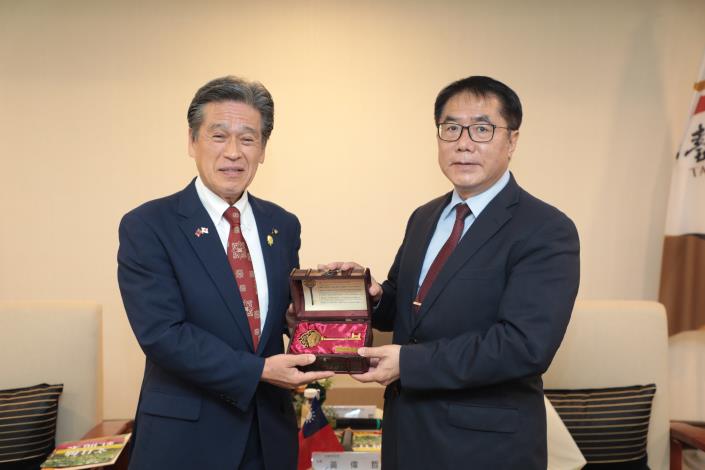 友誼市日本那珂市先﨑光市長偕木野廣宣議長等一眾貴賓,今(17)日拜會黃偉哲市長,市府由新聞及國際關係處處長蘇恩恩陪同出席,雙方就教育、物產、觀光等交流進行深入討論。繼台南日前以那珂市命名道路後,先﨑市長今天亦於會中宣布,將於那珂市設立「台南道」,以紀念兩市友好情誼。