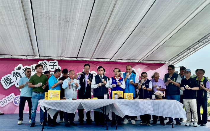2025官田菱角藝術節於今(18)日在西拉雅國家風景區盛大展開,活動由隆田國小太鼓術隊、官田國小祥獅獻瑞及官田區農會高齡班舞動銀髮熱舞熱鬧揭幕,並舉行模範農民表揚儀式,隨後還有水管阿民、狗屎運爵士大樂團、樣爸森友會與劍玉師小螺絲接連演出。另活動現場連續兩天提供 600份香氣四溢菱角排骨湯供民眾免費試吃,讓大家品味在地美味,同時也能感受官田豐收喜悅。現場並舉辦趣味十足「菱角挑戰賽」,邀請民眾同樂。此外,活動亦設有「菱角特賣會」,集結當季新鮮菱角與各式菱角加工產品,讓參與民眾滿載而歸。