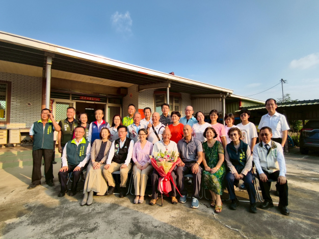 第一站來到官田區101歲陳添結爺爺的住處。陳爺爺雖高齡逾百歲,仍精神矍鑠、步履穩健,談起家人時笑容滿面,回顧早年的艱辛歲月,陳爺爺始終重視子女教育與栽培,如今子女事業皆有成,有的投身教育界作育英才,有的於警界退休,小兒子更在本市六甲消防分隊擔任打火弟兄,持續奉獻社會。值得一提的是,陳爺爺熱心服務鄰里,長年擔任鄰長達38年之久,直到高齡百歲才正式退休。他笑著表示,能長壽健康的秘訣,正是來自於長年服務鄰里、樂於助人的精神與使命感。