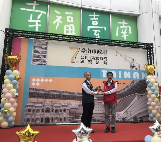 南市第七屆公共工程優質獎頒獎典禮於今(22)日隆重舉辦,水利局囊括逾1/3獎項,提報9件亮點工程獲評審委員高度肯定,繳出「2特優3優等4佳作」的史上最佳成績單,獲獎數量及等第更是笑傲群雄。尤秘書長天厚出席頒獎並對水利團隊積極投入各項治水防洪建設,又能兼顧施工品質及安全與生態永續發展等面向表示讚許。