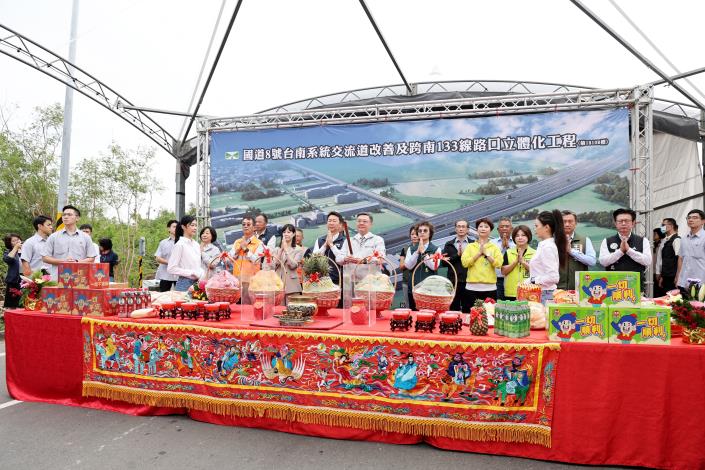 為改善國道8號紅綠燈造成的壅塞與安全問題,台南市政府與中央攜手投入35.85億元,推動「國道8號台南系統交流道改善及跨南133線路口立體化工程」,今(24)日舉行動土祈福典禮,行政院長卓榮泰、交通部長陳世凱、高速公路局局長陳文瑞出席,台南市則由副市長趙卿惠代表市長黃偉哲到場。工程完工後預期可大幅提升國道8號的通行效率與安全性,並強化南科園區高科技產業供應鏈的交通運輸能力。