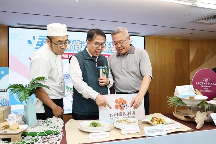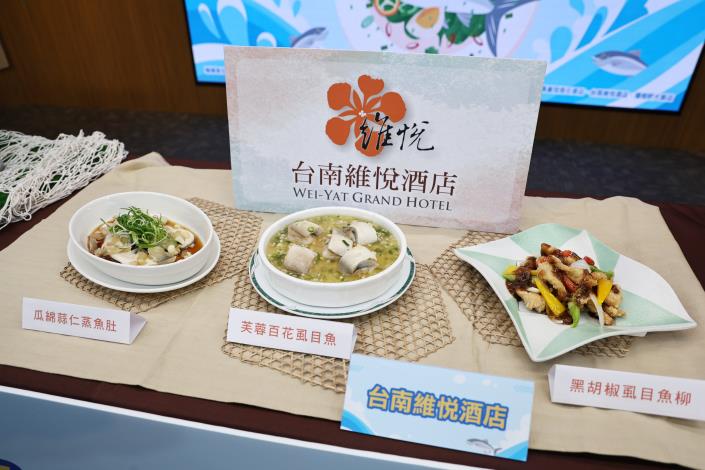 農業局補充,從11月16日至12月15日止,南市府與5家飯店(禧榕軒大飯店、台南維悅酒店、台南大員皇冠假日酒店、台南台糖長榮酒店、台南老爺行旅)合作推出以虱目魚為主題設計的菜品,包括府城虱目魚希臘沙拉、避風塘虱目魚柳、虱目魚鬆蛋糕、府城牛奶魚燒賣、鼓汁虱目魚豆腐堡等,歡迎市民朋友於活動期間至合作飯店消費,飽啖台南最在地也最新潮的虱目魚料理。