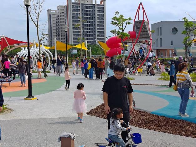 除了防災與韌性建設,重劃過程中亦積極蒐集社區意見,將地方特色與居民需求融入公園設計,打造兩座兼具文化特色與全齡友善的主題公園。啟用後不僅成為安南區熱門打卡景點,更讓孩童、長者及輪椅族都能自由使用空間,真正實踐人人都能安心到訪的健康生活場域,也讓社區互動與生活品質得到明顯提升。