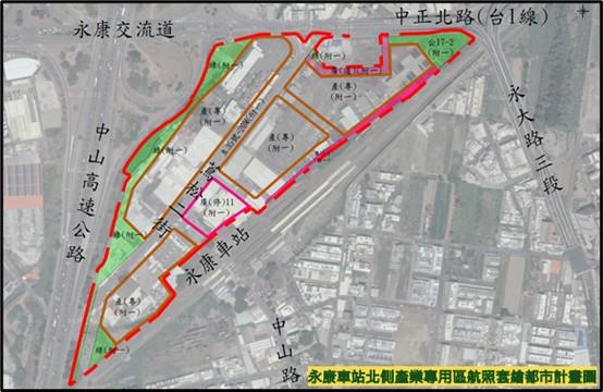 永康車站北側產業專用區配合未來永康車站鐵路立體化及工業區轉型,透過都市計畫以市地重劃辦理整體開發,重劃後變更為研發及商業為主之產業用地,並提供優質公共設施,為永康增添發展動能。市長黃偉哲展望臺南產業轉型發展及看好本區域的交通優勢,指示地政局積極辦理本區市地重劃。