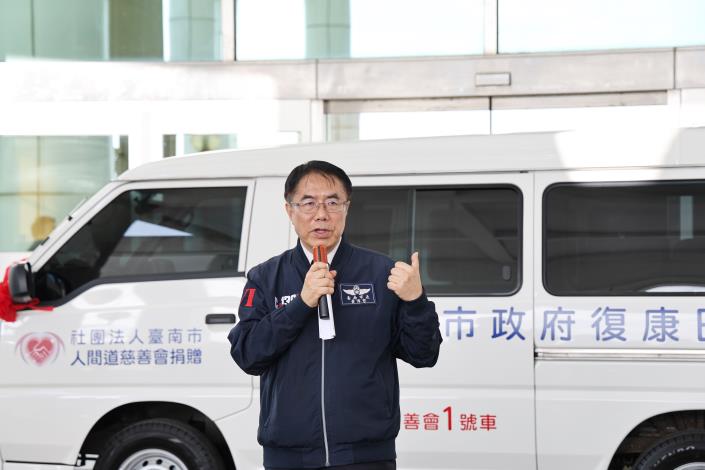 為響應台南市照顧弱勢優先的施政理念,社團法人台南市人間道慈善會秉持回饋社會初衷,慷慨捐贈1輛復康巴士,協助提升身心障礙者及行動不便者的交通服務量能。今(29)日於永華市政中心二樓迴廊舉行捐贈儀式,市長黃偉哲代表市府受贈並回贈感謝狀,感謝慈善會以實際行動支持市政、關懷弱勢,攜手打造更友善的城市環境。