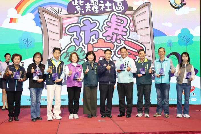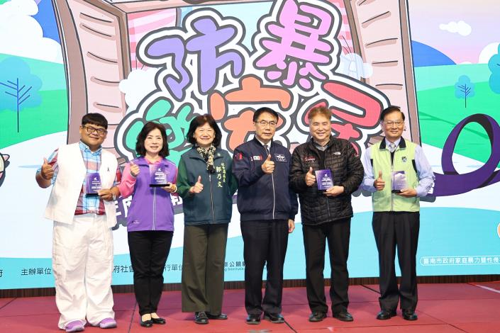 台南市政府今(13)日於福爾摩沙遊艇酒店舉辦「社區防暴有功人員表揚大會」,現場共有350位來自在地社區組織、志工團體及網絡團隊的宣導人員共同響應。市長黃偉哲親自頒發獎牌予54組宣導團隊,感謝他們深耕社區,多年來持續投入家庭暴力、兒少保護與性侵害、性騷擾等初級預防工作,期望未來吸引更多民間組織及社區民眾共同參與。