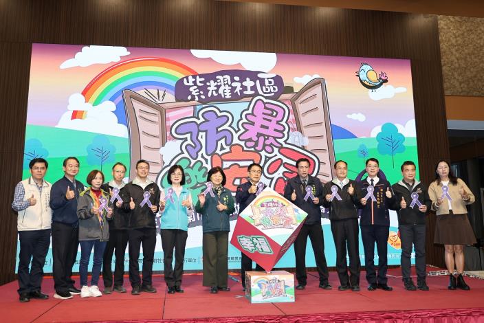 今日活動中,市長黃偉哲與多位貴賓現場轉動南市防暴精神堡壘,為其貼上紫絲帶,宣示公私部門齊力推動反暴力的決心。市議員王家貞親自出席,立委林俊憲服務處、各議員服務處也派代表共襄盛舉。