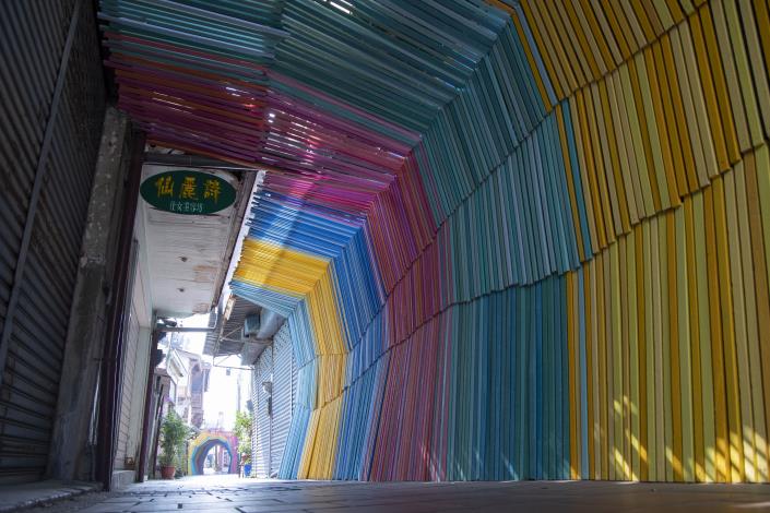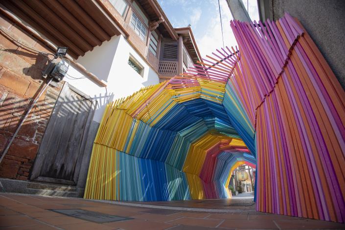 文化局表示,擁有豐富地景創作經驗的藝術家王振瑋,作品常見對生命本質的關懷,時常賦予廢棄木材再生的意義,思索藝術為土地和人文帶來的豐沛力量。本次為連成巷創作《記憶的流動》,以老宅屋頂常用的傳統木質瓦壓條彩繪,創造出一段色彩繽紛的巷弄空間,使人們在行走過程中感受到時間的流逝與空間的交融,呼應策展主題「透明的某日」。每一片彩色瓦壓條都像記錄著過去的回憶與當下的瞬間,穿越這個繽紛的空間時,不僅是視覺的享受,更是一段深入心靈的旅程。