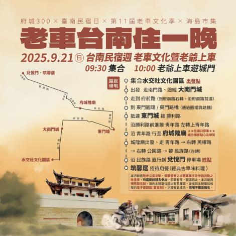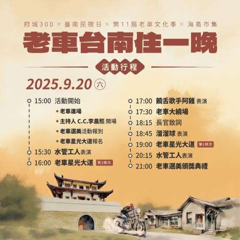 - 活動名稱:府城300 × 台南民宿日 × 第11屆老車文化季 × 海島市集